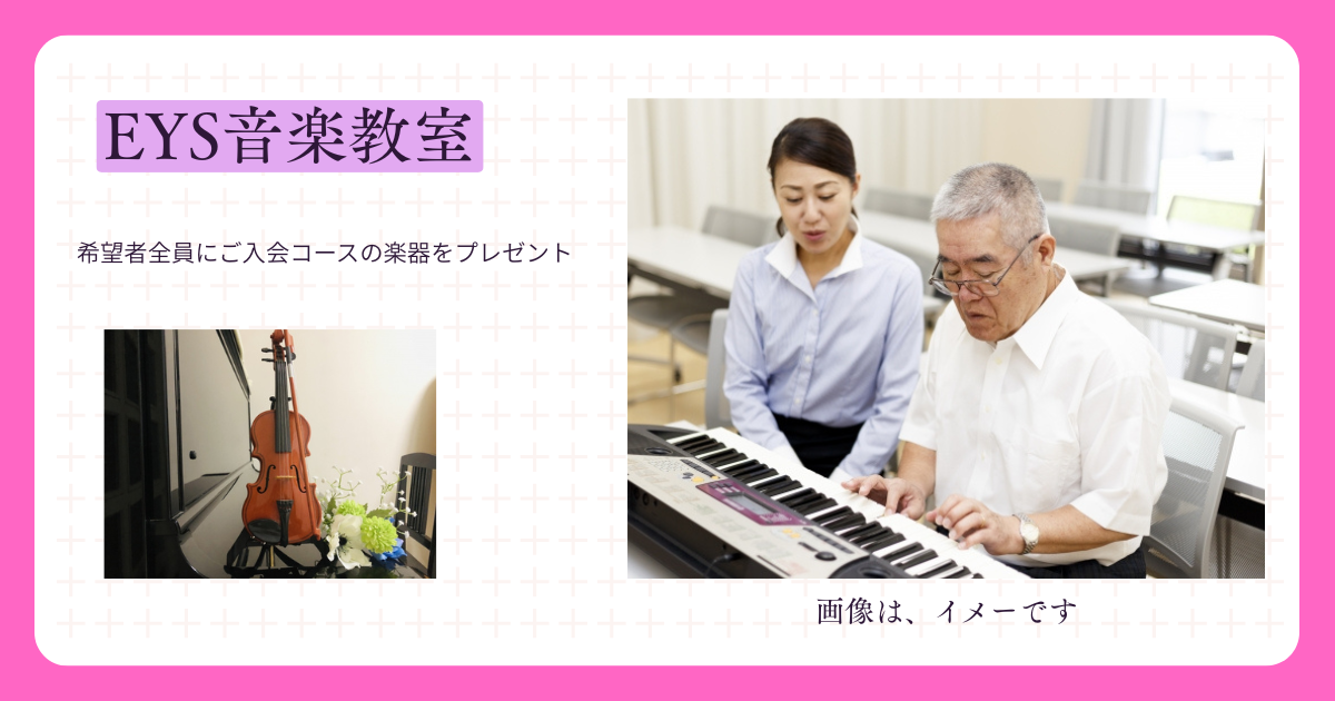 毎日の生活の中で、「何か新しい趣味を始めたい」「昔やっていた楽器をもう一度やってみたい」と感じることはありませんか。そんな人たちから注目を集めているのが、業界初の楽器無料プレゼントを実施している【EYS音楽教室】です。